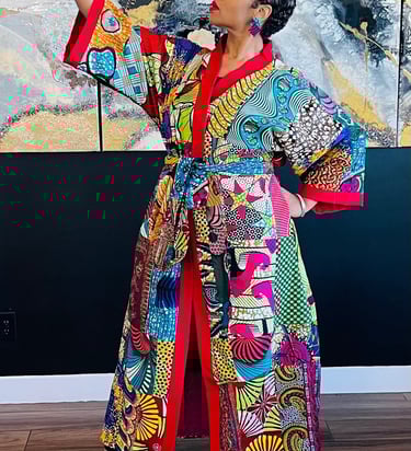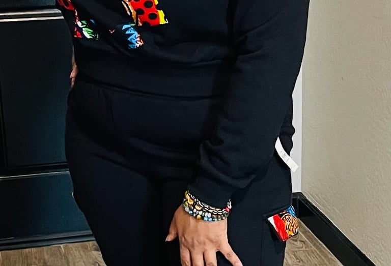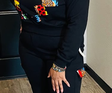Comfort meets culture in this Ankara accented sweatshirt set.